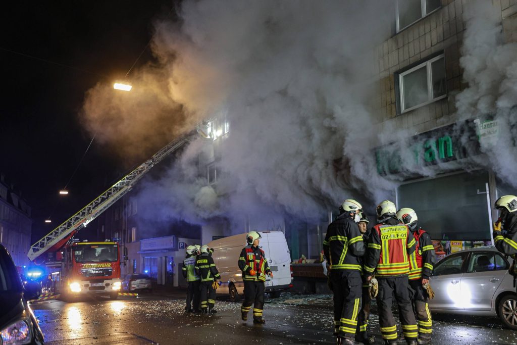 Foto: Florian Petersen – Brand in einem SupermarktZu einem größeren Brand kam es gegen 22:47 Uhr in der Wichlinghauser Straße. Dort geriet der Keller eines mehrgeschossigen Wohn- und Geschäftshauses in Brand. Die Feuerwehr rettete eine Person aus dem Gebäude und begann umgehend mit einer zeit- und personalintensiven Brandbekämpfung. In der Spitze waren allein an dieser Einsatzstelle rund 65 Einsatzkräfte von Berufsfeuerwehr, Freiwilliger Feuerwehr und Rettungsdienst vor Ort. Der Einsatz war nach rund drei Stunden beendet.