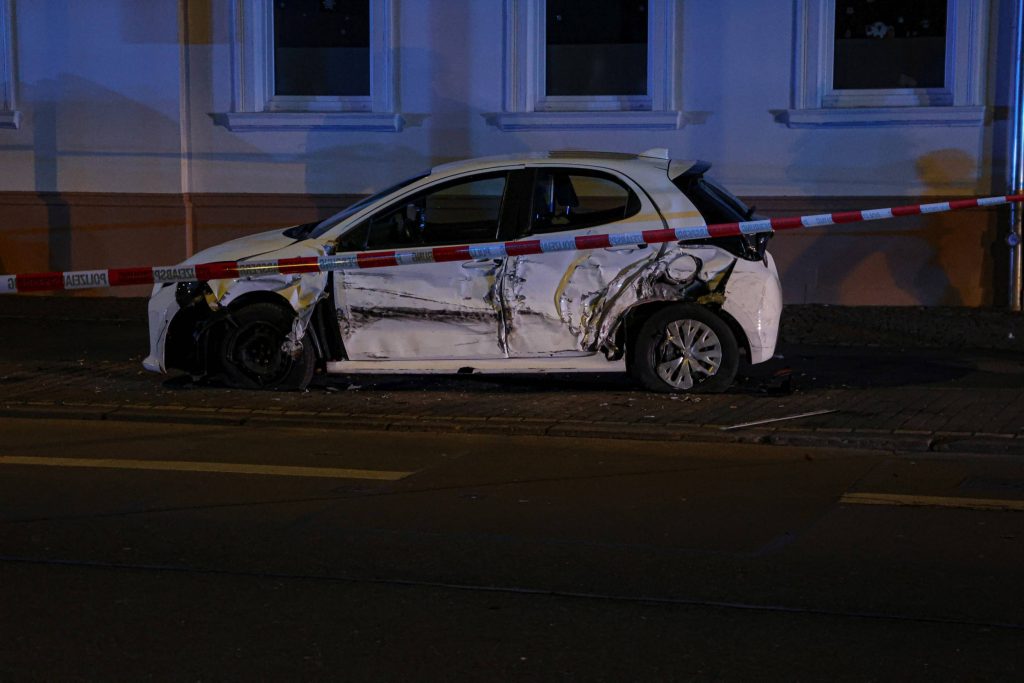 Foto: Florian PetersenIm Rahmen der Durchsuchung des Fahrzeugs fanden die Beamten mutmaßlich Einbruchswerkzeug und eine geringe Menge Cannabis. Insgesamt wurden bei dem Verkehrsunfall sechs Fahrzeuge, ein Stromkasten und eine Mauer beschädigt. Drei Pkw waren nicht mehr fahrbereit. Es entstand ein Sachschaden von mehreren 10.000 Euro. Für die Dauer der Unfallaufnahme war ein Verkehrsunfallaufnahme-Team der Polizei vor Ort. Die Friedrich-Ebert-Straße war in dem Bereich über mehrere Stunden komplett gesperrt.